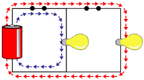 En un circuito paralelo, los puntos por donde entra la corriente a los receptores están unidos, al igual que por donde sale. En un circuito paralelo, todos los receptores tienen la misma tensión. La intensidad cambia en función de la resistencia. Es el circuito más común en instalaciones reales, ya que en éstas, lo que se persigue es que todos los receptores tengan el mismo valor de tensión